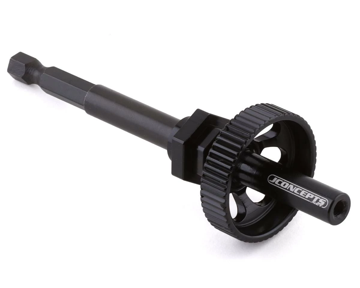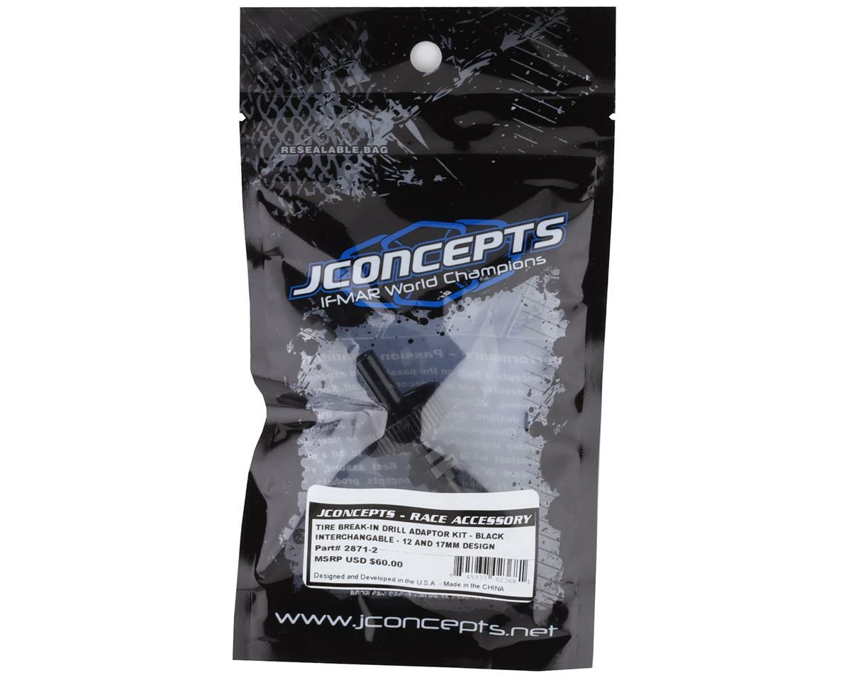The JConcepts Tire Break-In Drill Adaptor Kit was developed for 1/10 and 1/8 tire break in. This simple combination of a standard hex drive shaft for a typical drill, has been extended and given some lock driven flats to make it a very useful tool around the track. An aluminum 12 and 17mm hex adaptor slides over the shaft to give racers the option of which type of vehicle (1/10th or 1/8th) they are preparing tires for.