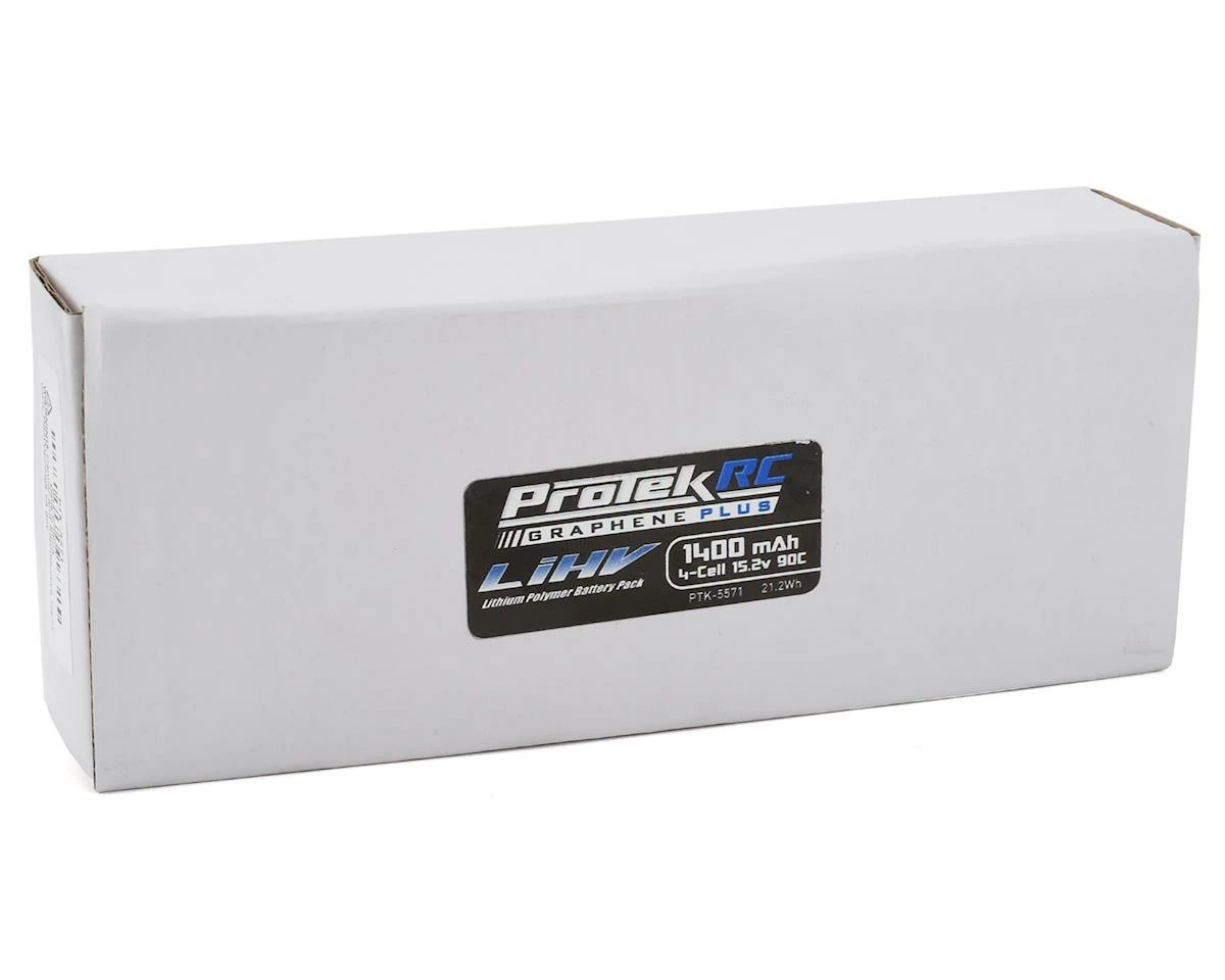 Lab testing has shown that ProTek R/C Silicon Graphene packs have double the cycle life when charged at 1C rates, and can be charged at higher amp rates, with less risk of damage to the pack. More importantly, the discharge curve is flatter, meaning the cells maintain higher voltage throughout the discharge cycle with no significant drop off. Additionally, when compared to conventional LiPo batteries Silicon Graphene batteries are lighter, providing a higher capacity per gram ratio. With 15.2V nominal voltage, 90C discharge ratings, incredibly high charge rates and ten different models to choose from, ProTek R/C Graphene + packs are perfect for enthusiasts that demand the absolute best.