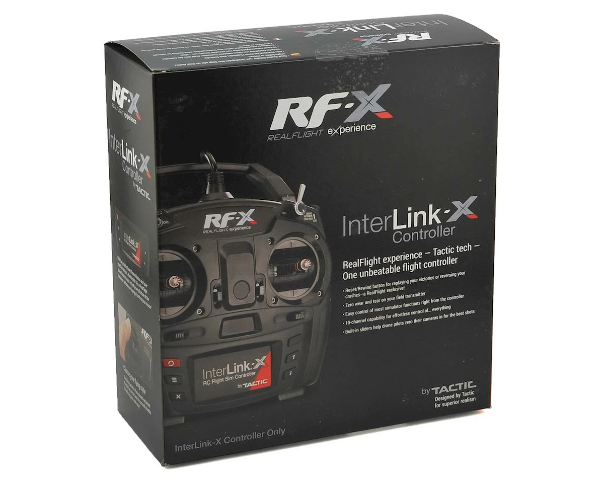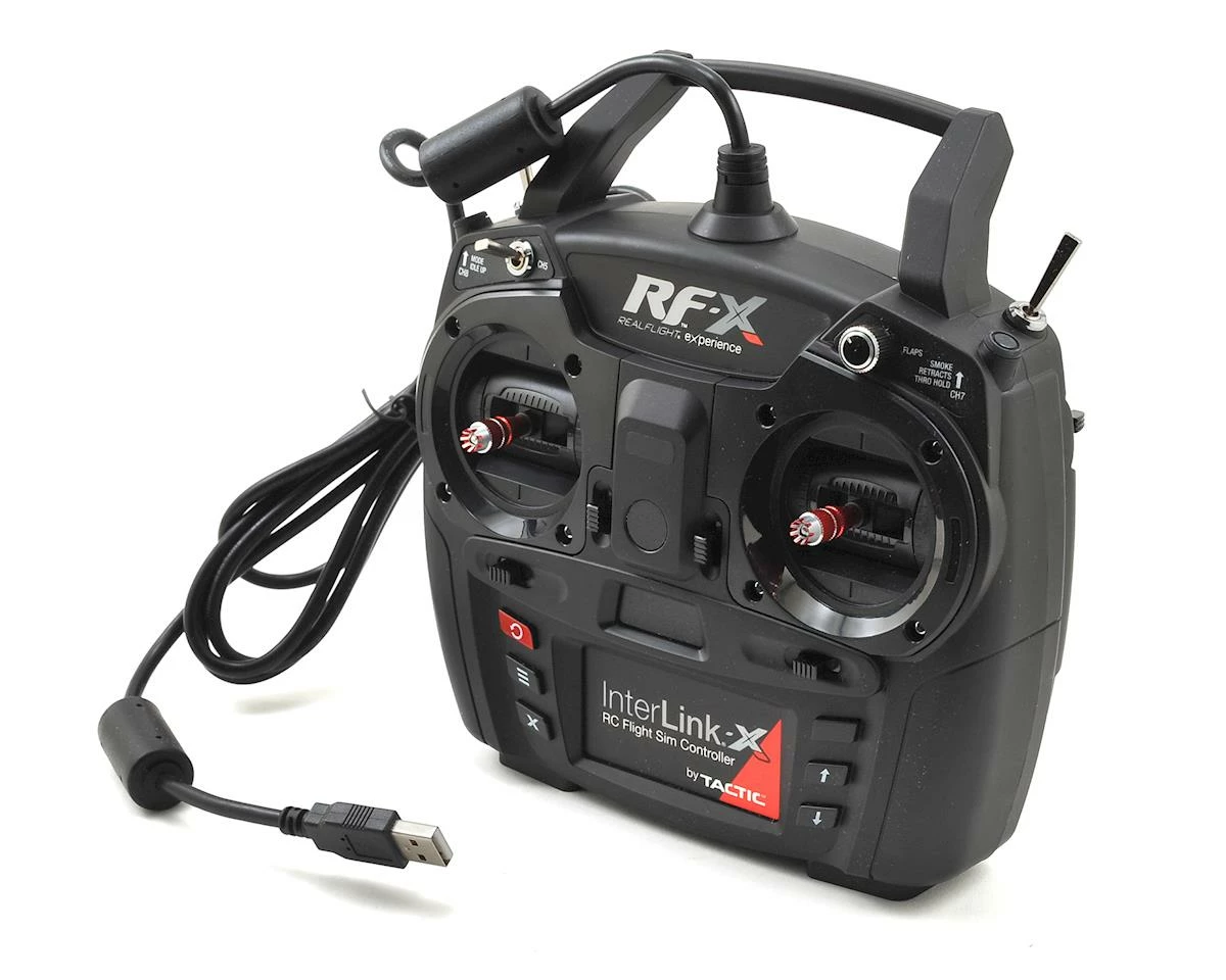 This is a replacement Great Planes Interlink-X Transmitter, for use with the RealFlight 8 Flight Simulator. Use this transmitter as a replacement to a broken unit, or if you’re looking to add a specialized transmitter to your RF8 experience. Also works with the discontinued Real Flight RF-X simulator software.