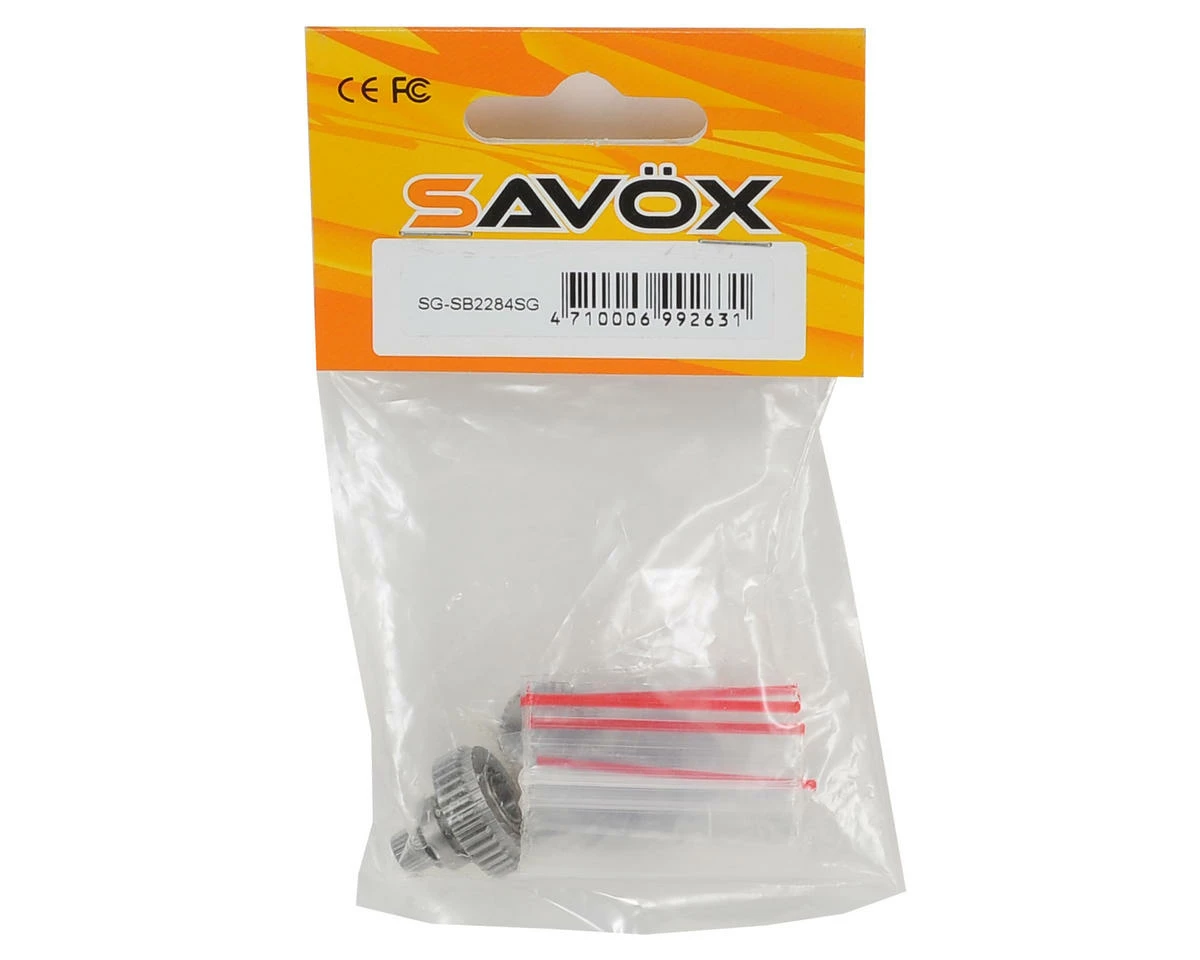 This is a replacement Savox SB2284SG Metal Gear Set. Package includes servo gears, main gear with factory installed bearing and pins.