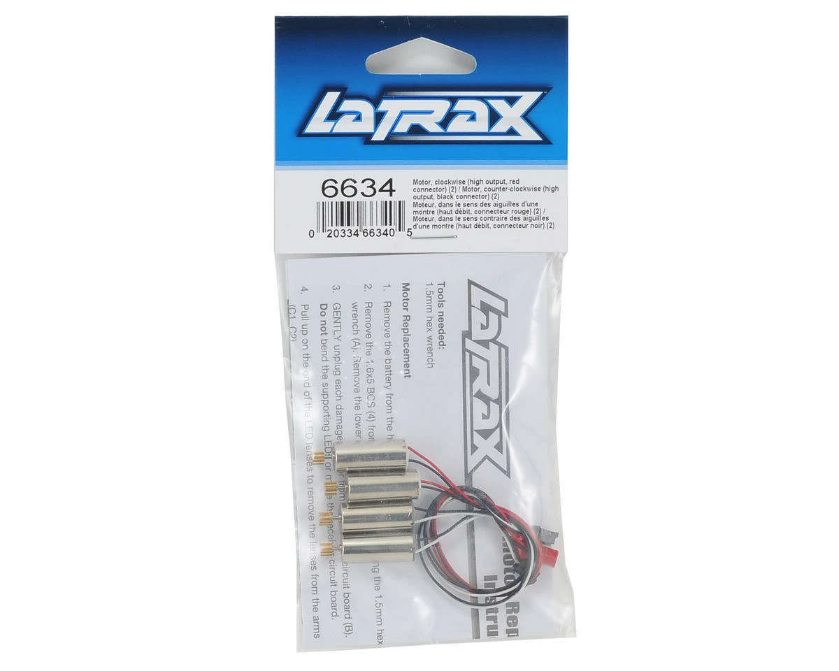 This is a replacement LaTrax Alias Motor Set. Package includes four pre-wired motors, two clockwise rotation motors and two counter clockwise motors.